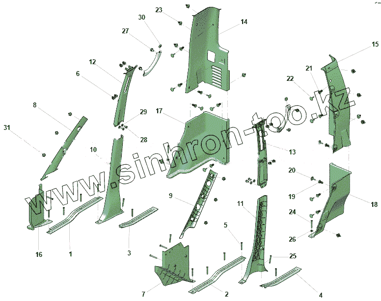 Каталог запасных частей к технике: УАЗ Профи Стандарт (236324-0000100-00). Обивки, облицовки