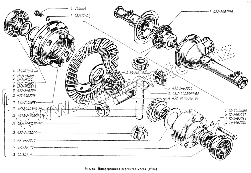 Каталог запасных частей к технике: УАЗ-2206. Дифференциал переднего моста
