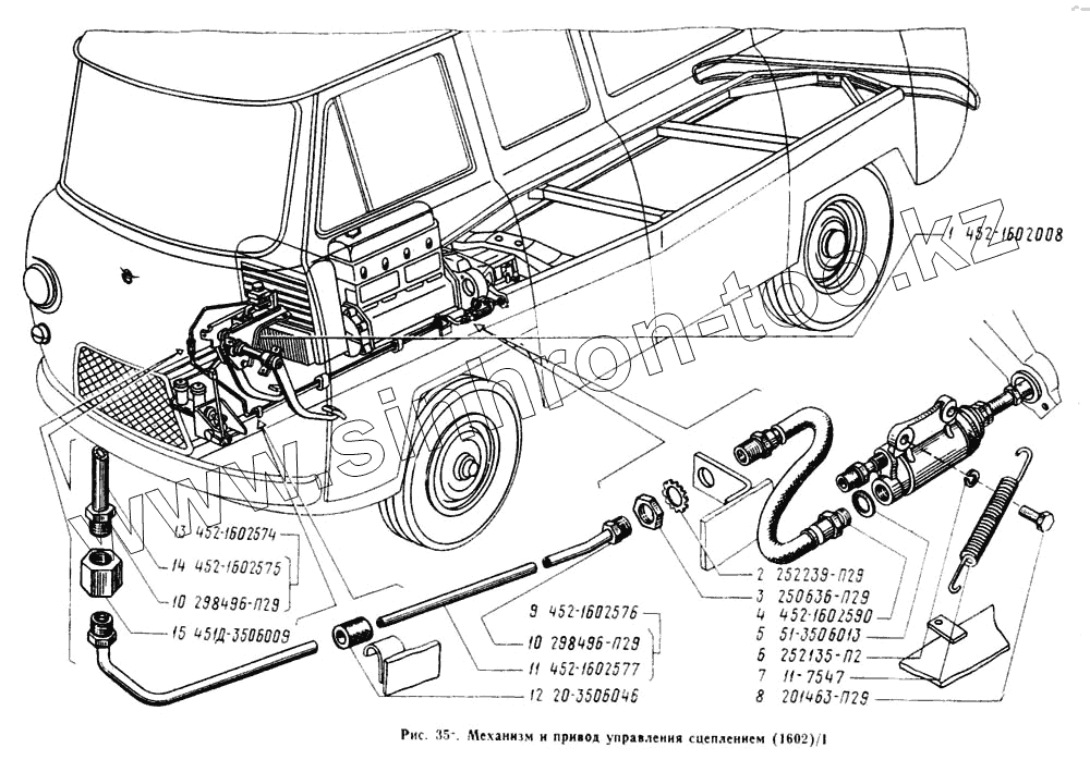 Каталог запасных частей к технике: УАЗ-2206. Механизм и привод управления сцеплением