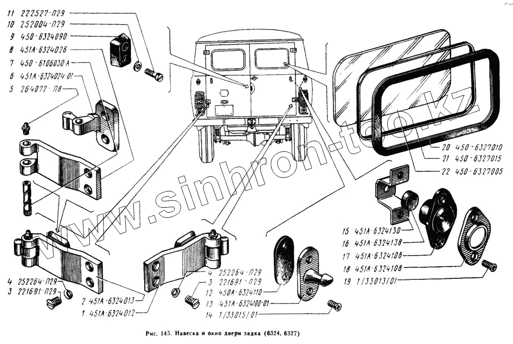 Каталог запасных частей к технике: УАЗ-2206. Навеска дверей задка, окно двери задка