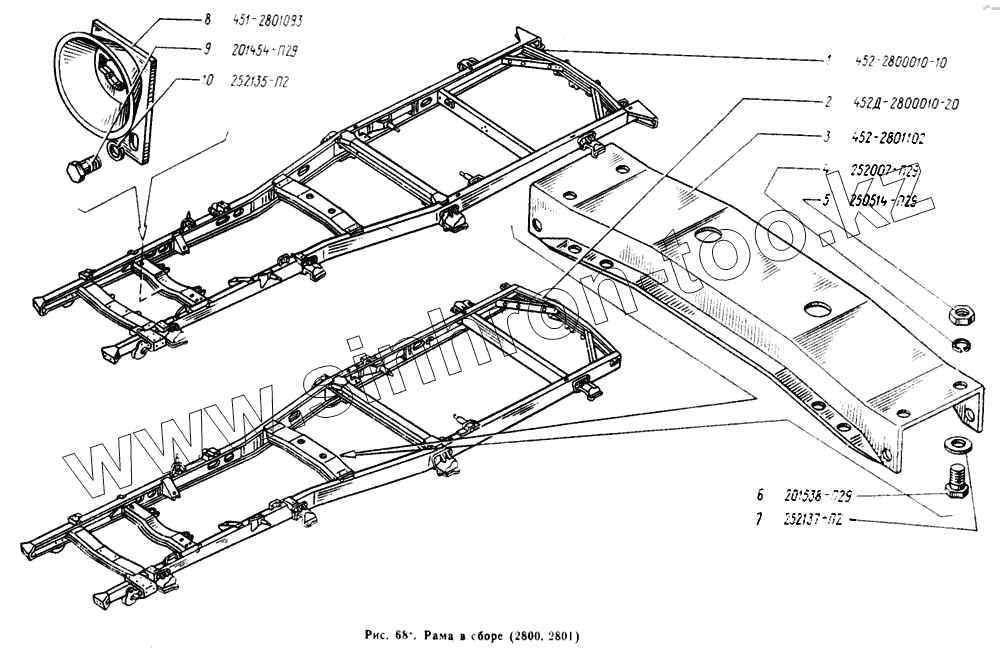 Каталог запасных частей к технике: УАЗ-2206. Рама в сборе