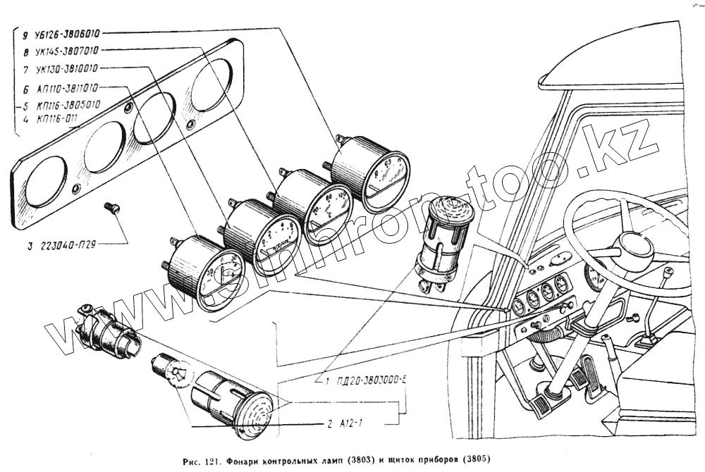 Каталог запасных частей к технике: УАЗ-2206. Щиток приборов, фонари контрольных ламп