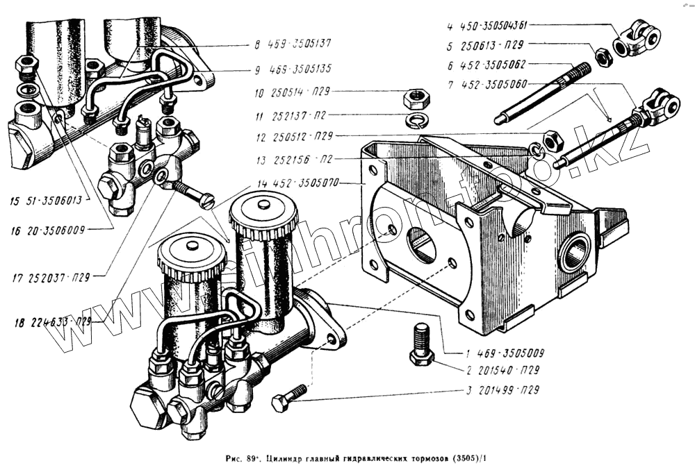 Каталог запасных частей к технике: УАЗ-2206. Цилиндр главный гидравлических тормозов