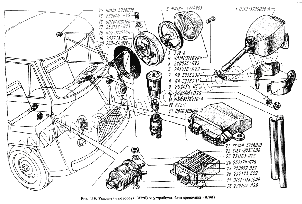 Каталог запасных частей к технике: УАЗ-2206. Указатели поворота, устройства блокировочные