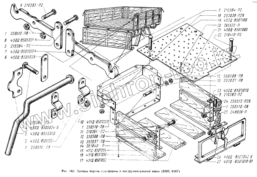 Каталог запасных частей к технике: УАЗ-2206. Запоры бортов, ящик инструментальный
