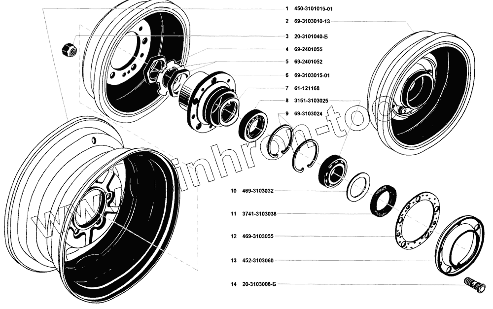 Каталог запасных частей к технике: УАЗ-31512. Колеса, ступицы передних и задних колес