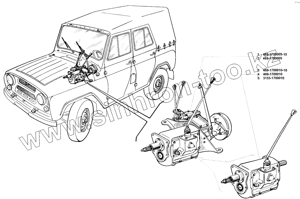 Каталог запасных частей к технике: УАЗ-31512. Коробка передач в сборе