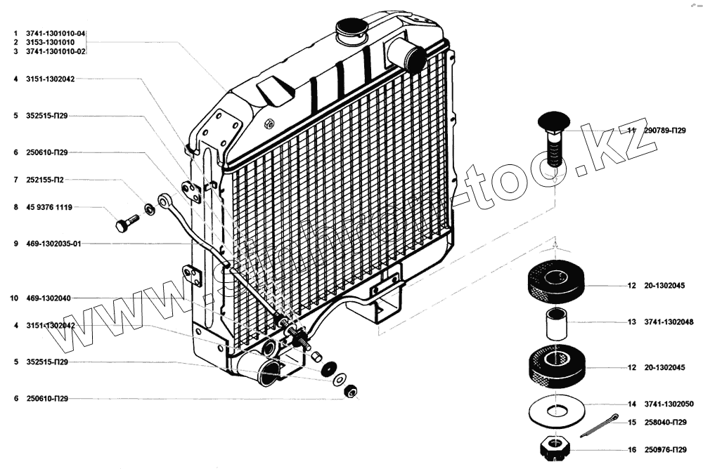 Каталог запасных частей к технике: УАЗ-31512. Радиатор и подвеска радиатора