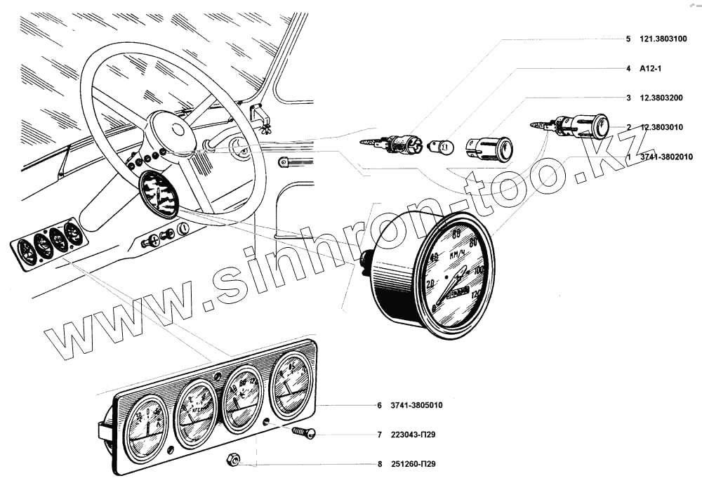 Каталог запасных частей к технике: УАЗ-31512. Щиток приборов, спидометр, фонари контрольных ламп