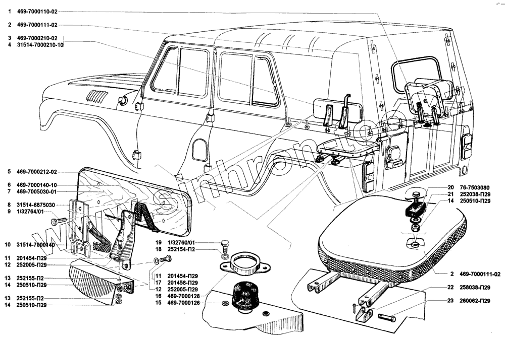 Каталог запасных частей к технике: УАЗ-31512. Сиденье заднее, спинка заднего сиденья