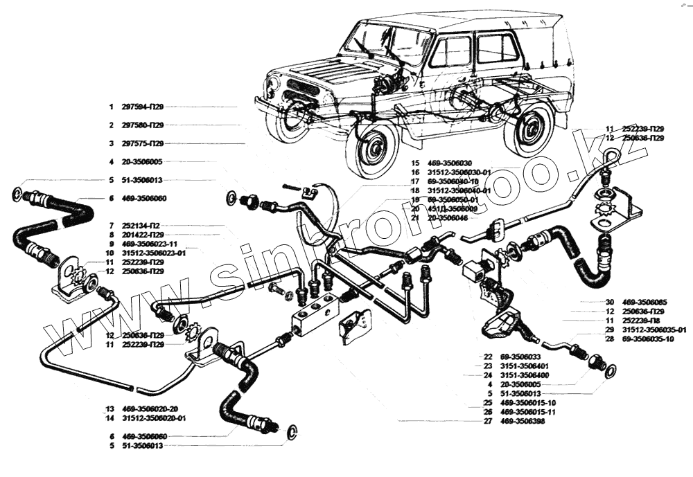 Каталог запасных частей к технике: УАЗ-31512. Трубопроводы гидравлических тормозов