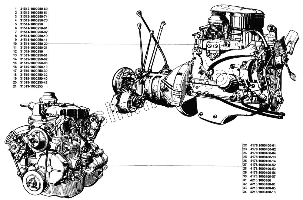Каталог запасных частей к технике: УАЗ-31514. Двигатель в сборе