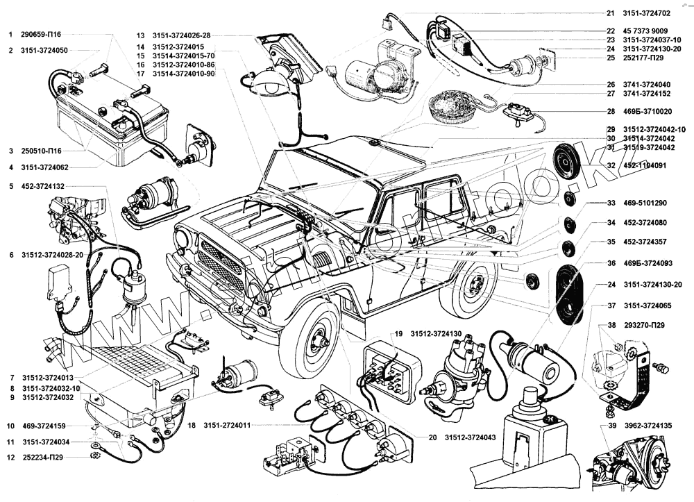 Каталог запасных частей к технике: УАЗ-31514. Электропровода