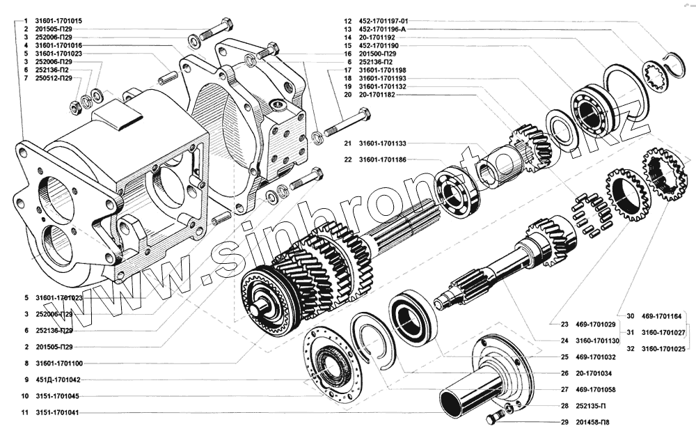 Каталог запасных частей к технике: УАЗ-31514. Коробка передач