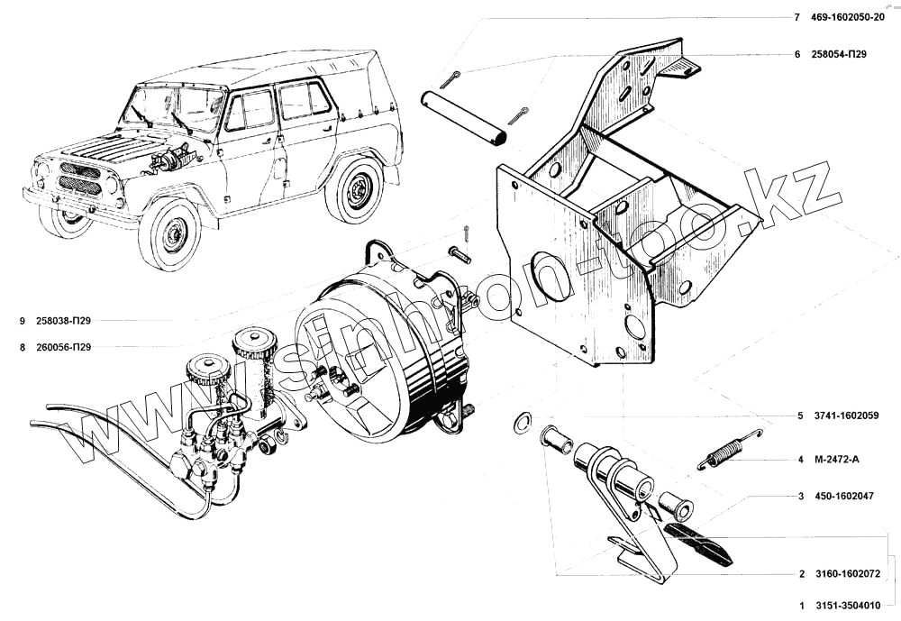 Каталог запасных частей к технике: УАЗ-31514. Педаль и привод механизма управления тормозами