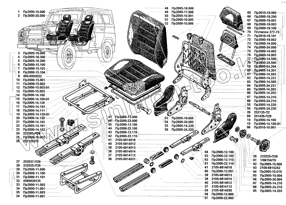 Каталог запасных частей к технике: УАЗ-31514. Сиденье водителя в сборе