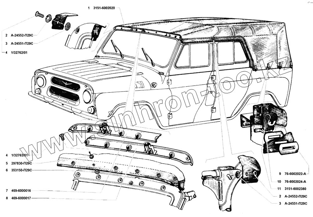 Каталог запасных частей к технике: УАЗ-31514. Тент в сборе