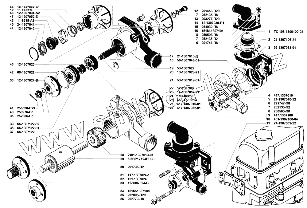 Каталог запасных частей к технике: УАЗ-31514. Термостат и насос системы охлаждения