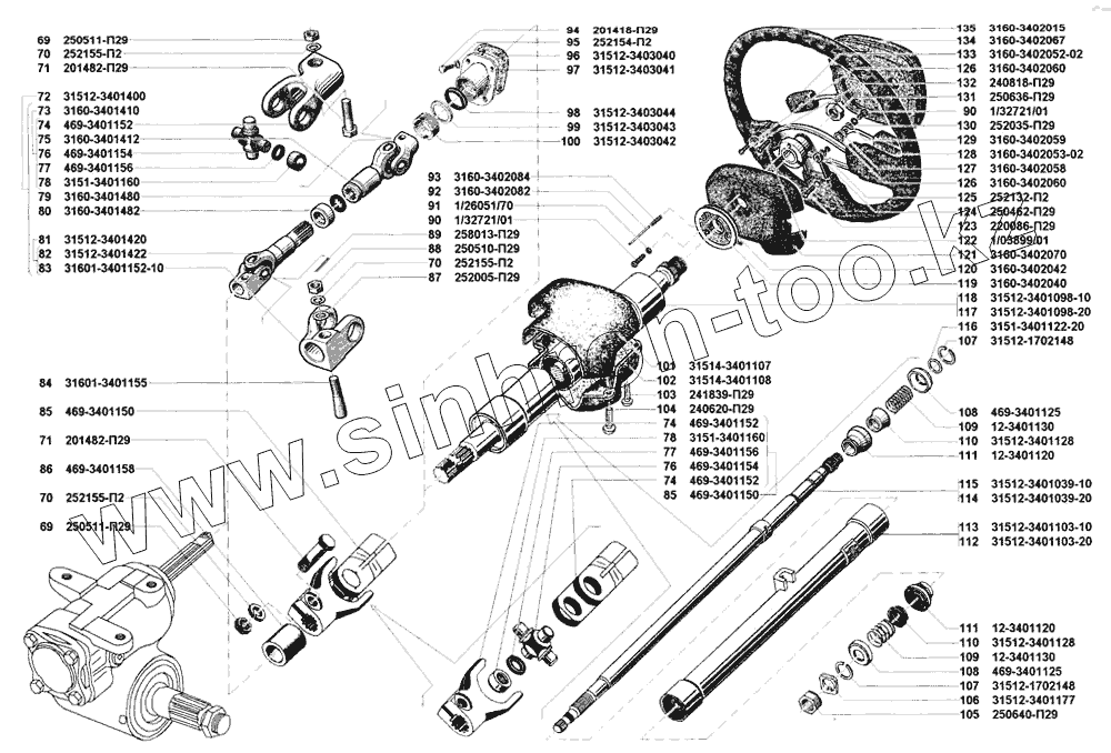 Каталог запасных частей к технике: УАЗ-31514. Управление рулевое и колесо рулевого управления