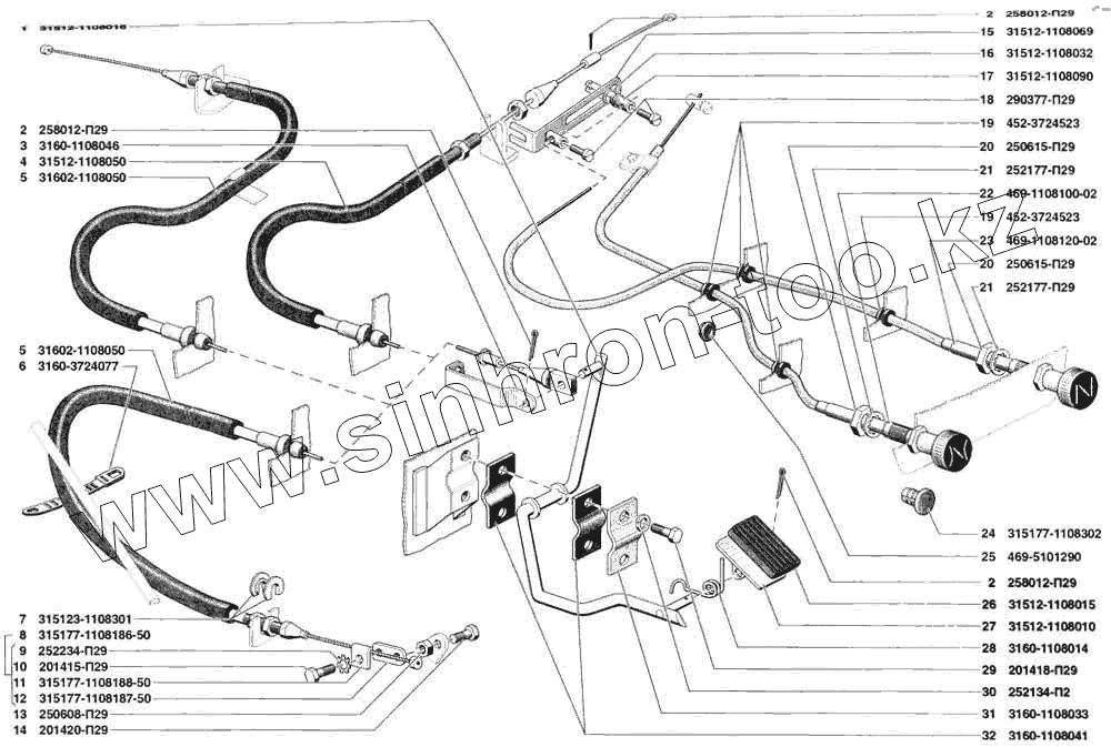 Каталог запасных частей к технике: УАЗ-31519. Акселератор (управление подачей топлива)