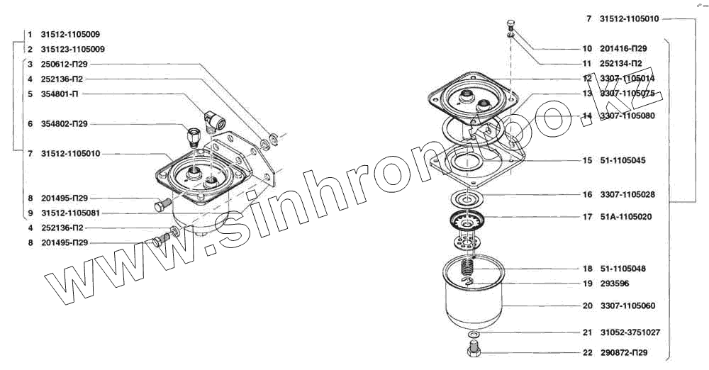 Каталог запасных частей к технике: УАЗ-31519. Фильтр грубой очистки топлива
