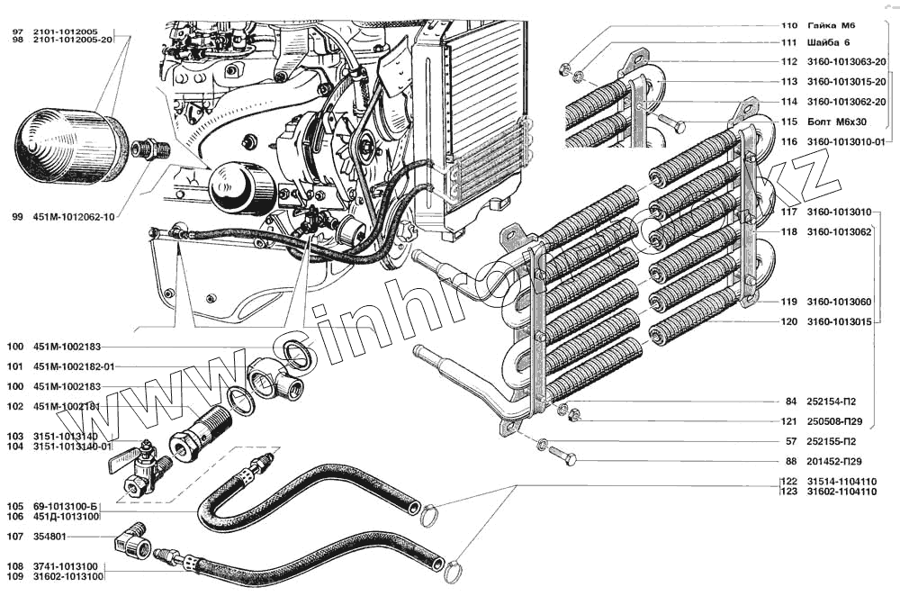 Каталог запасных частей к технике: УАЗ-31519. Фильтр очистки масла и радиатор масляный