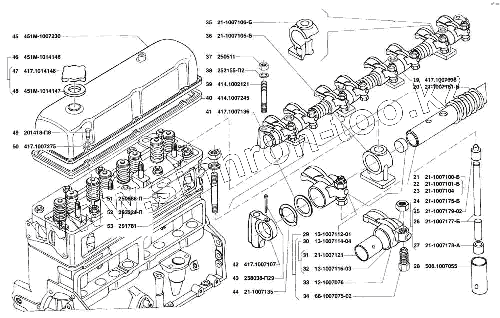 Каталог запасных частей к технике: УАЗ-31519. Клапаны и толкатели