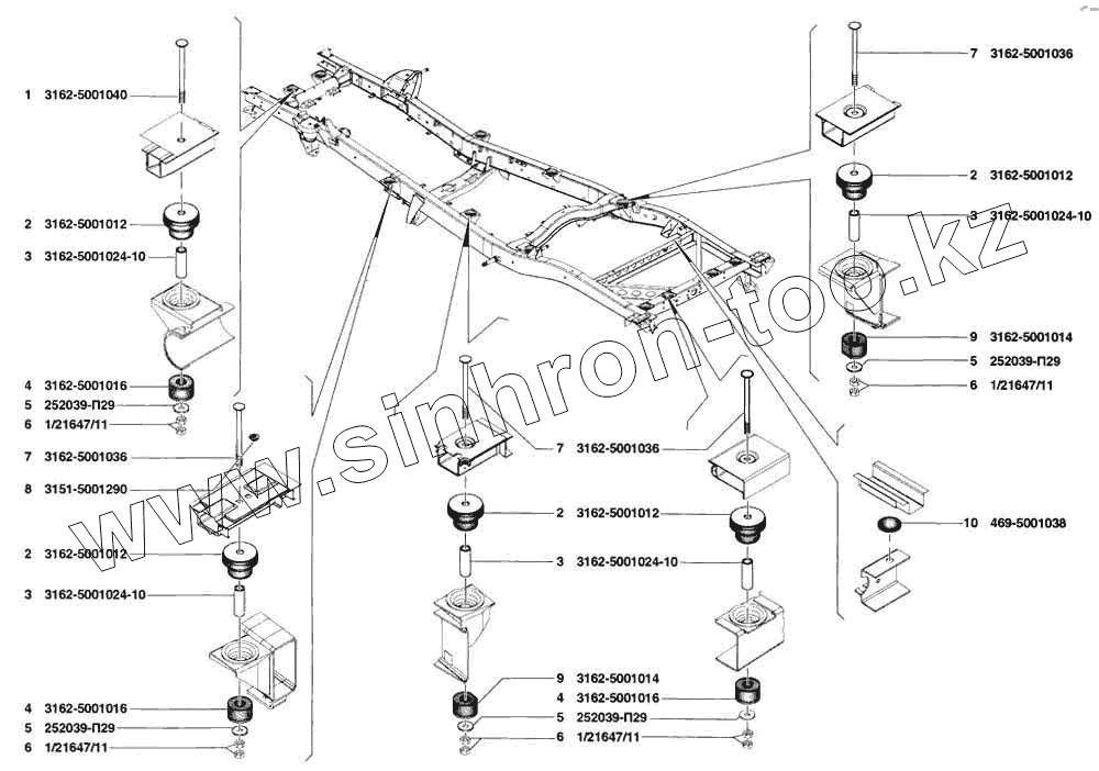 Каталог запасных частей к технике: УАЗ-31519. Крепление кузова к раме