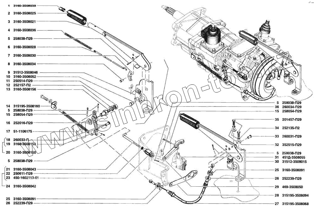 Каталог запасных частей к технике: УАЗ-31519. Привод механизма управления стояночным тормозом