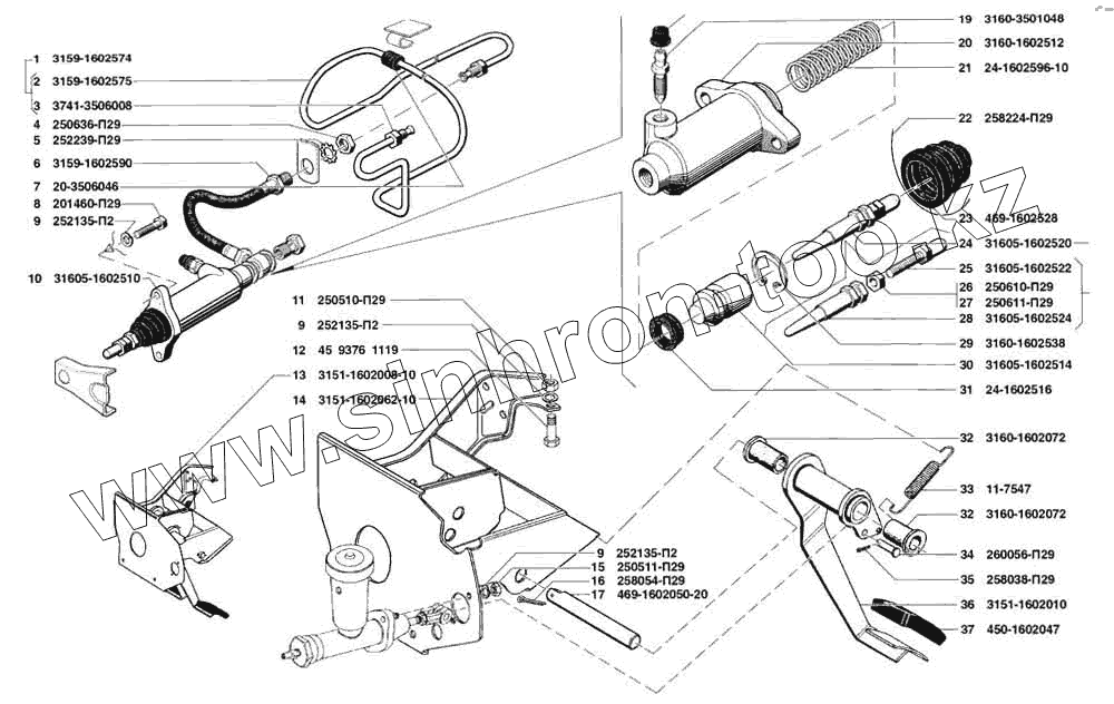 Каталог запасных частей к технике: УАЗ-31519. Привод выключения сцепления