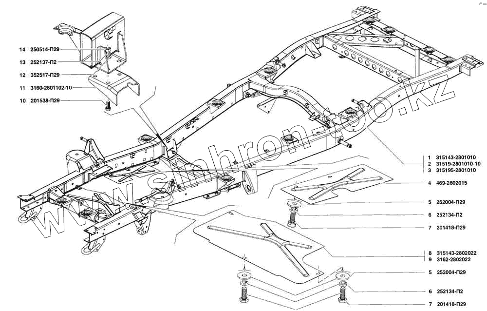 Каталог запасных частей к технике: УАЗ-31519. Рама в сборе и брызговики двигателя