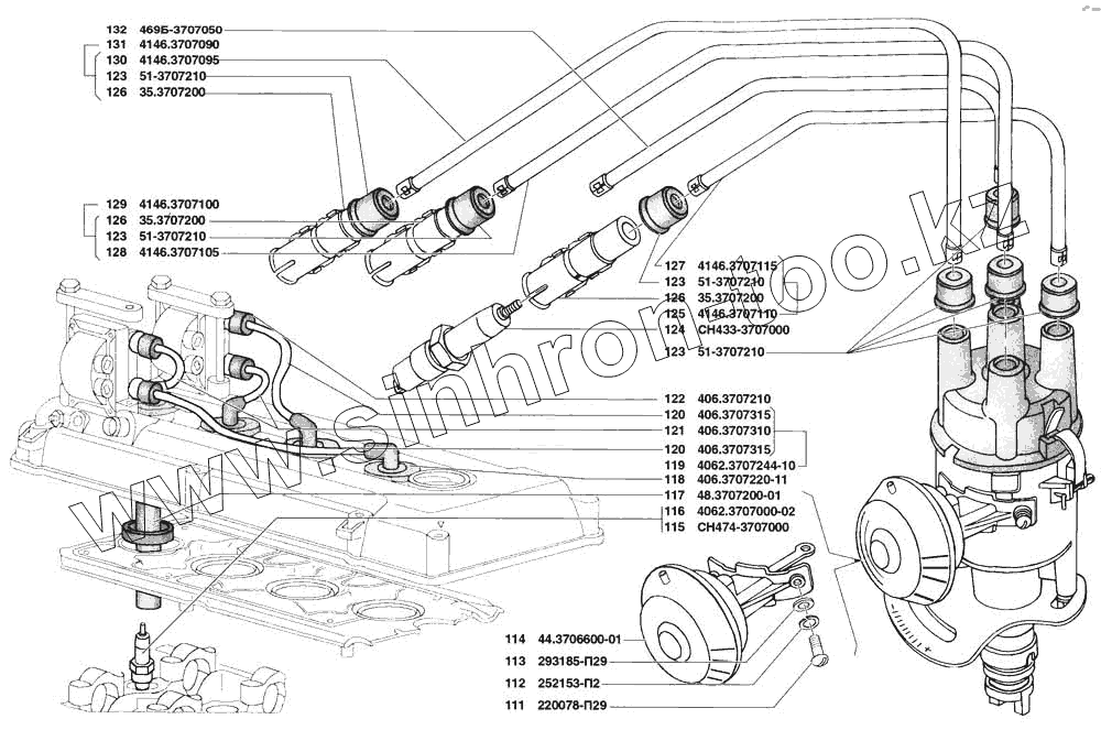 Каталог запасных частей к технике: УАЗ-31519. Распределитель зажигания, свечи и провода зажигания