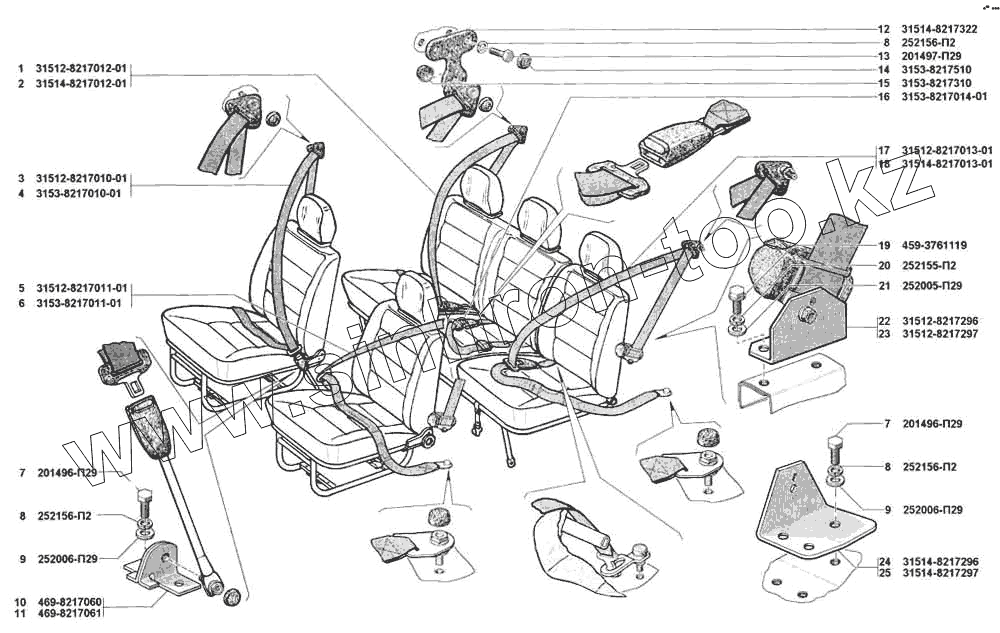 Каталог запасных частей к технике: УАЗ-31519. Ремни безопасности