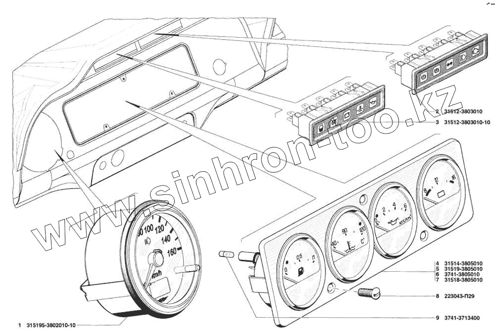 Каталог запасных частей к технике: УАЗ-31519. Щиток приборов, спидометр, блоки контрольных ламп