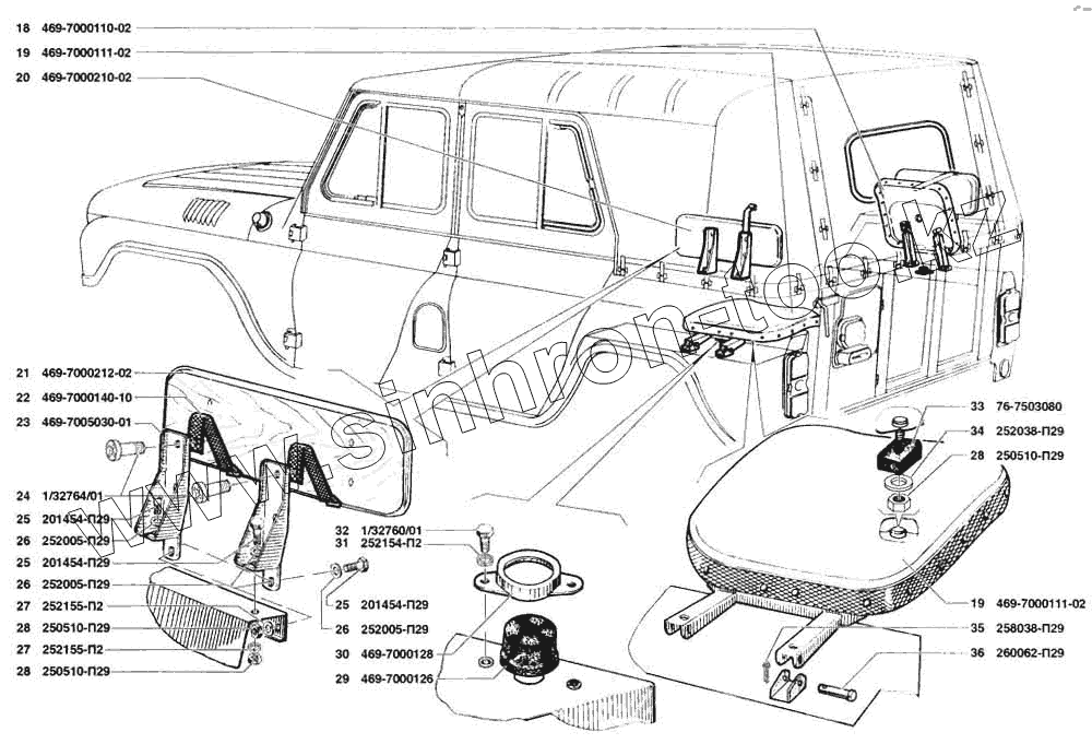 Каталог запасных частей к технике: УАЗ-31519. Сиденье откидное