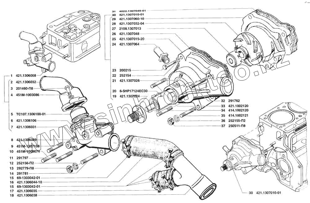 Каталог запасных частей к технике: УАЗ-31519. Термостат и насос системы охлаждения