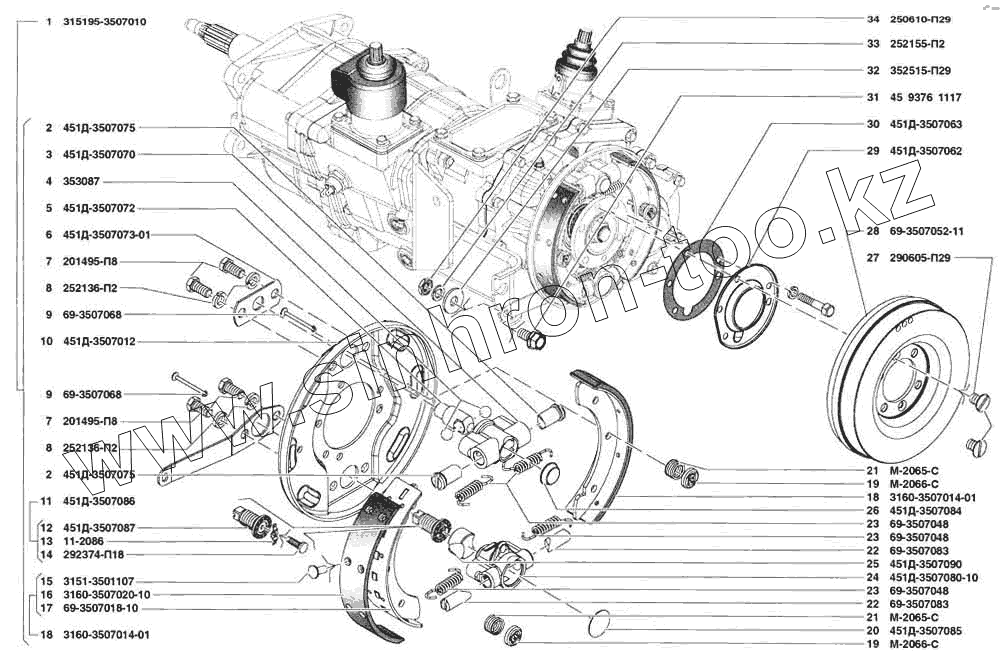 | 1 | 315195-3507010 | Стояночный тормоз в сборе | |