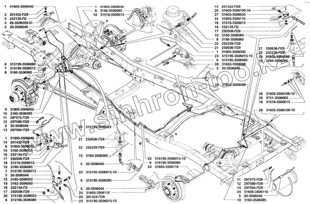 | 24 | 31605-3506110 | Трубка от тройника к левому заднему тормозу | |