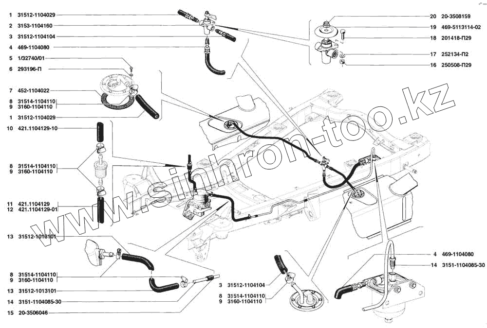 Каталог запасных частей к технике: УАЗ-31519. Трубопроводы топливные