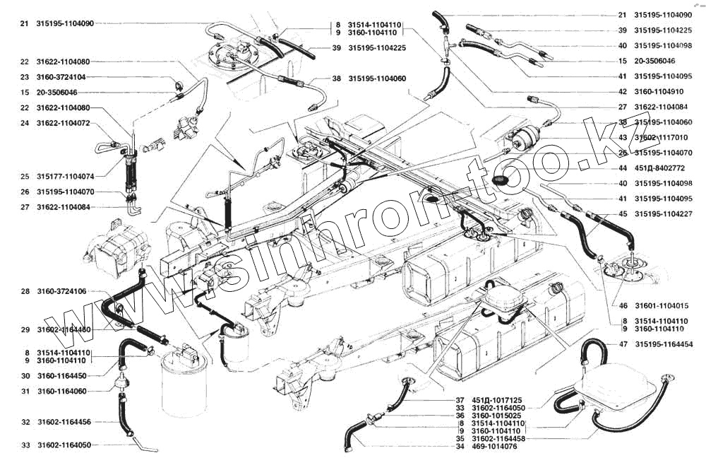 Каталог запасных частей к технике: УАЗ-31519. Трубопроводы топливные