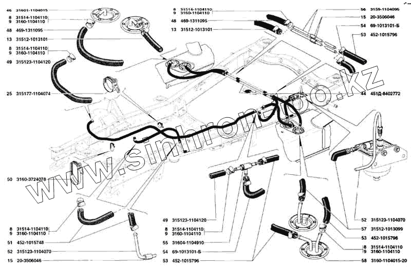 Каталог запасных частей к технике: УАЗ-31519. Трубопроводы топливные