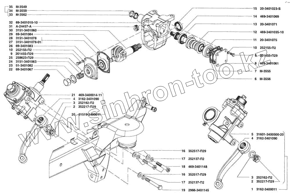 Каталог запасных частей к технике: УАЗ-31519. Управление рулевое в сборе, управление рулевое