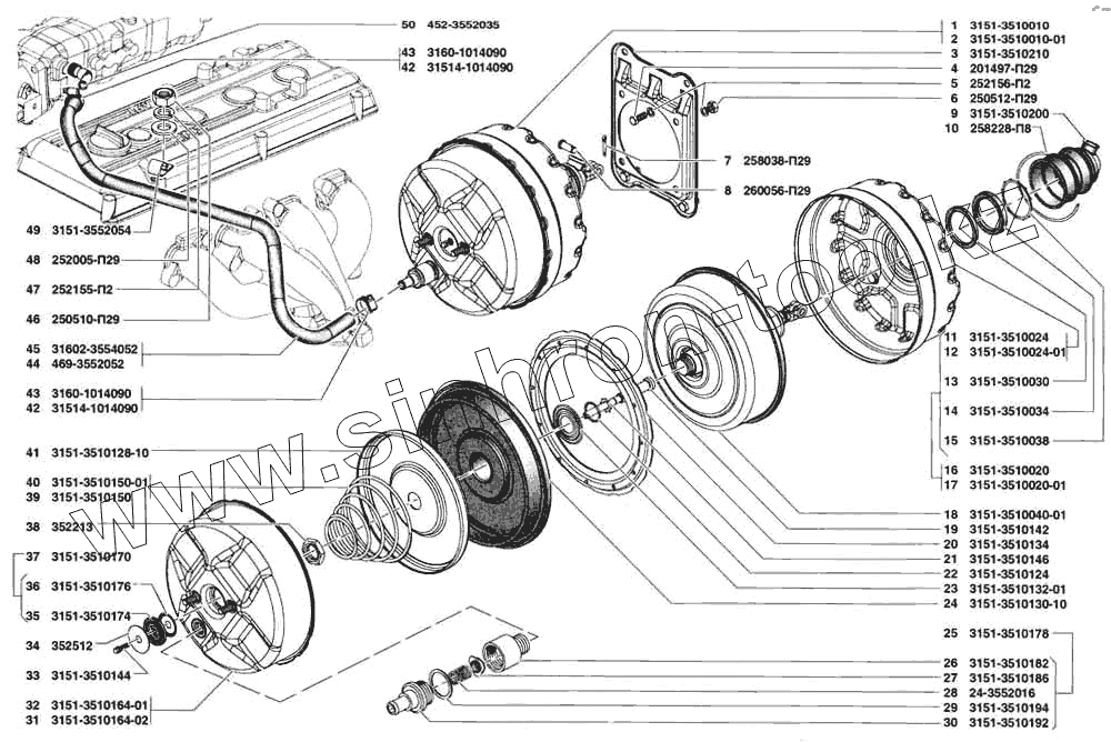 | 12 | 3151-3510024-01 | Корпус вакуумного усилителя с патрубком и болтами | |