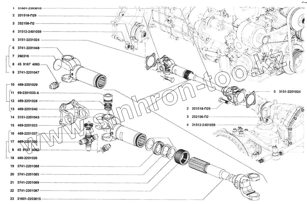 Каталог запасных частей к технике: УАЗ-31519. Вал карданный переднего моста