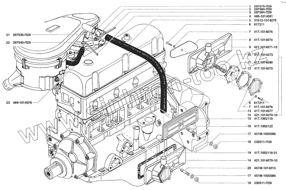Каталог запасных частей к технике: УАЗ-31519. Вентиляция картера