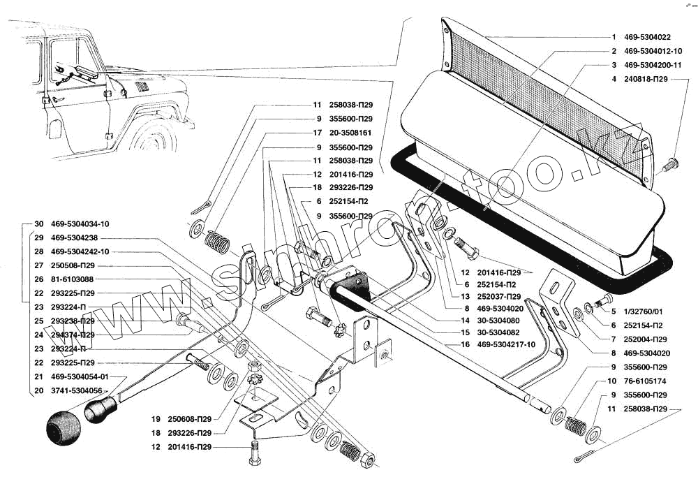 Каталог запасных частей к технике: УАЗ-31519. Вентиляция передка