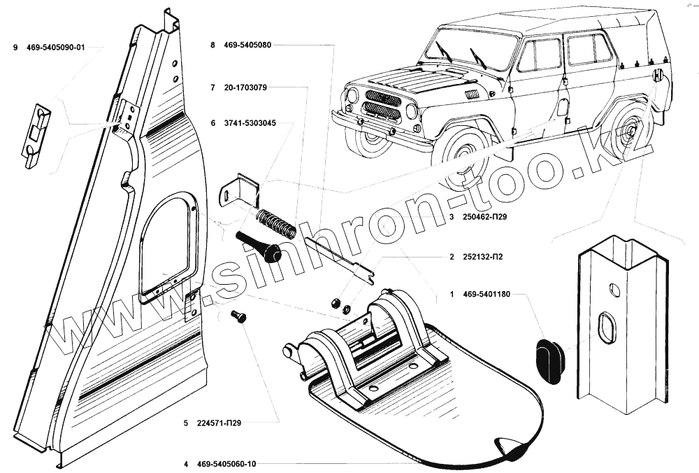 Каталог запасных частей к технике: УАЗ-31519. Боковина, стойка центральная
