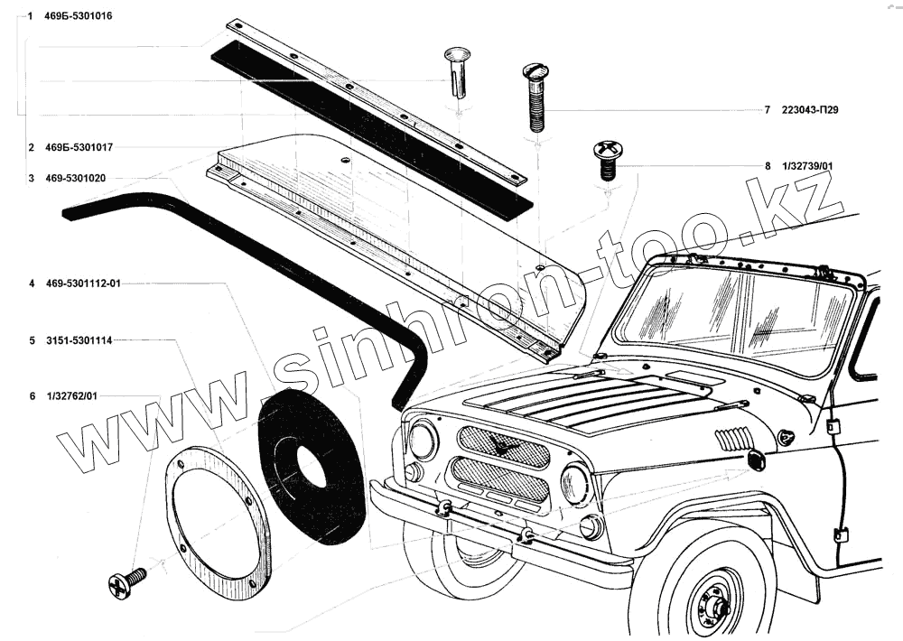 Каталог запасных частей к технике: УАЗ-31519. Детали передка