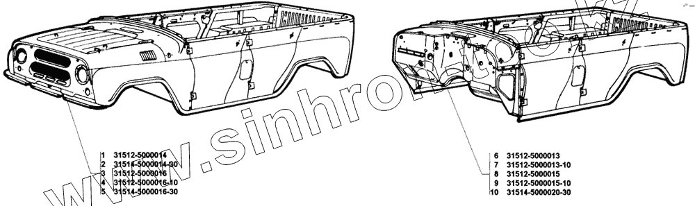Каталог запасных частей к технике: УАЗ-31519. Кузов в сборе