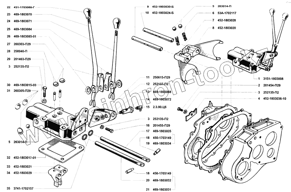 Каталог запасных частей к технике: УАЗ-31519. Механизм переключения передач раздаточной коробки